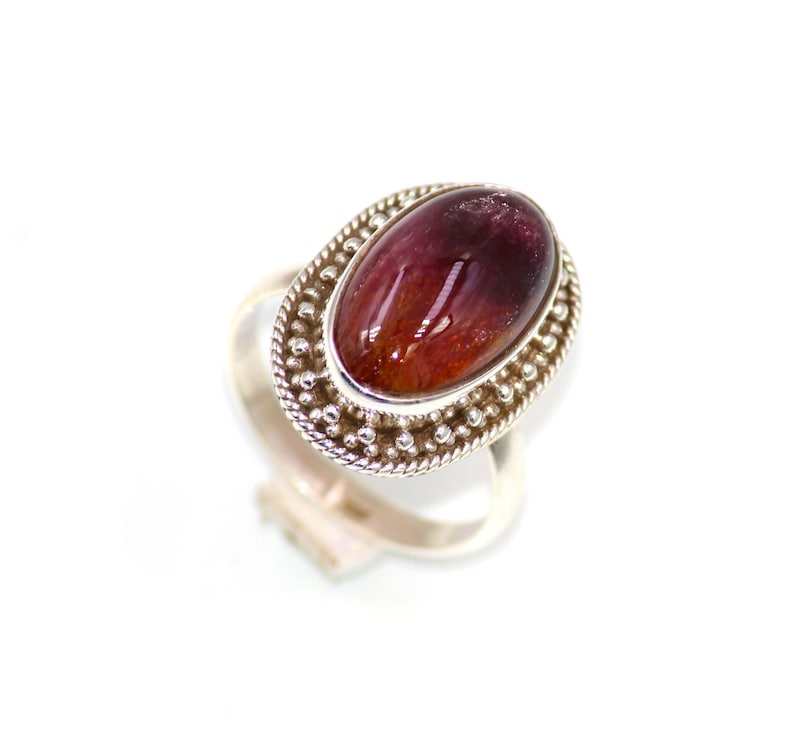 Bague fine en argent sterling 925 avec pierre précieuse cabochon de tourmaline rose naturelle