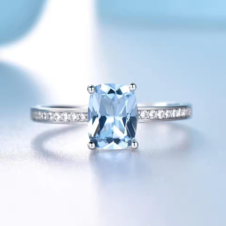 Bagues fines en argent sterling 925 pour mariages, bijoux en pierres précieuses naturelles : topaze bleu ciel, saphir, rubis, améthyste, opale, tourmaline