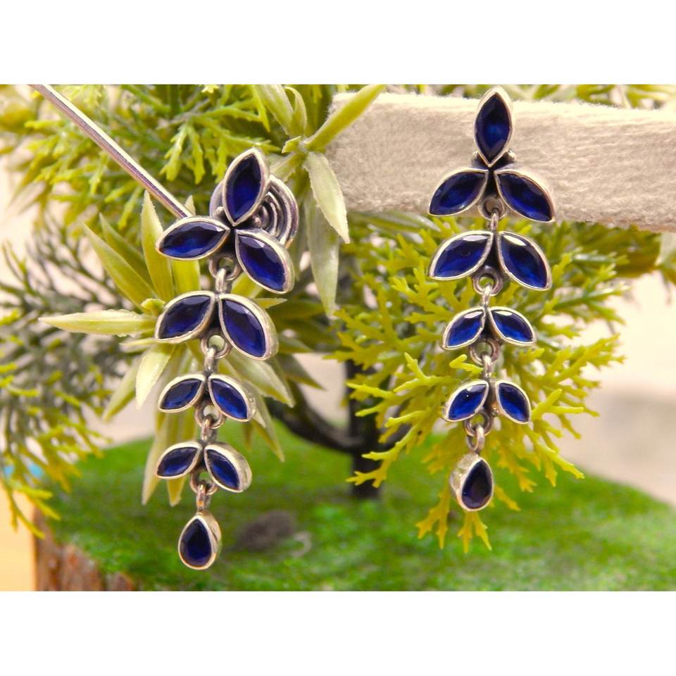 925 Sterling Silver Floral Stud Earrings Natural Blue Sapphire Lightweight Gemstone Jewelry for Anniversary Fashionable