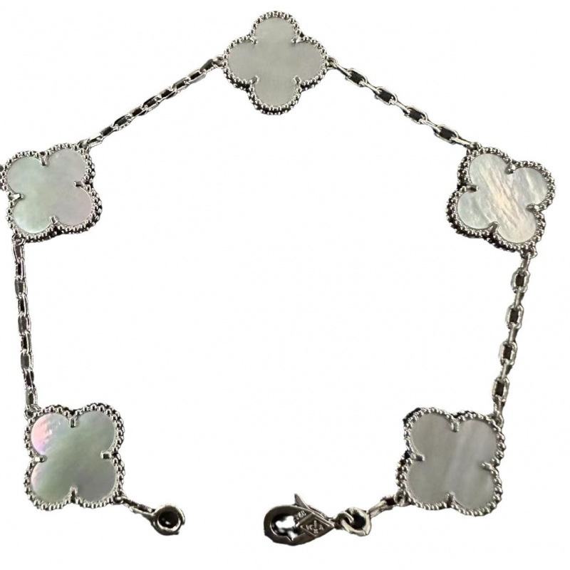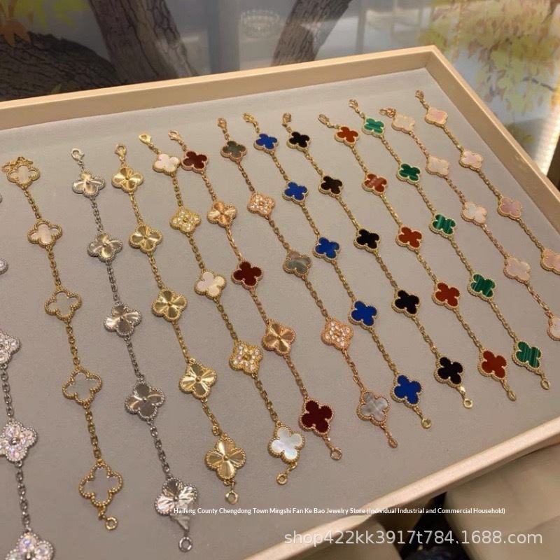 Bracelet unisexe en argent sterling 925, trèfle à quatre feuilles, cinq fleurs, plaqué or rose 18 carats, nacre blanche, agate rouge, onyx noir