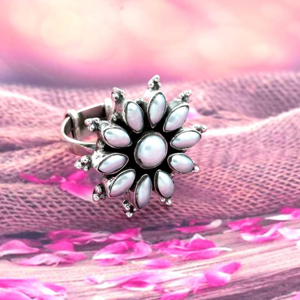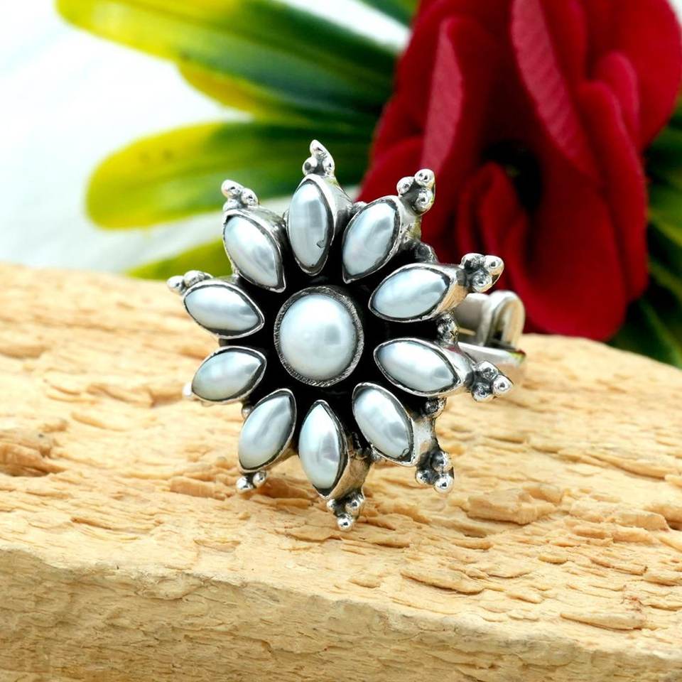 925 Sterling Silver Freshwater Pearl Ring Handmade White Gemstone Jewelry Gift for Girls and Women R0144-GS