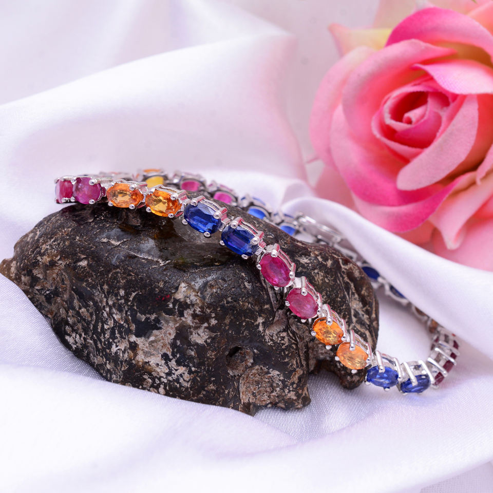 Ruby, jaune saphir, cyanite bracelet, argent pierres précieuses bracelet