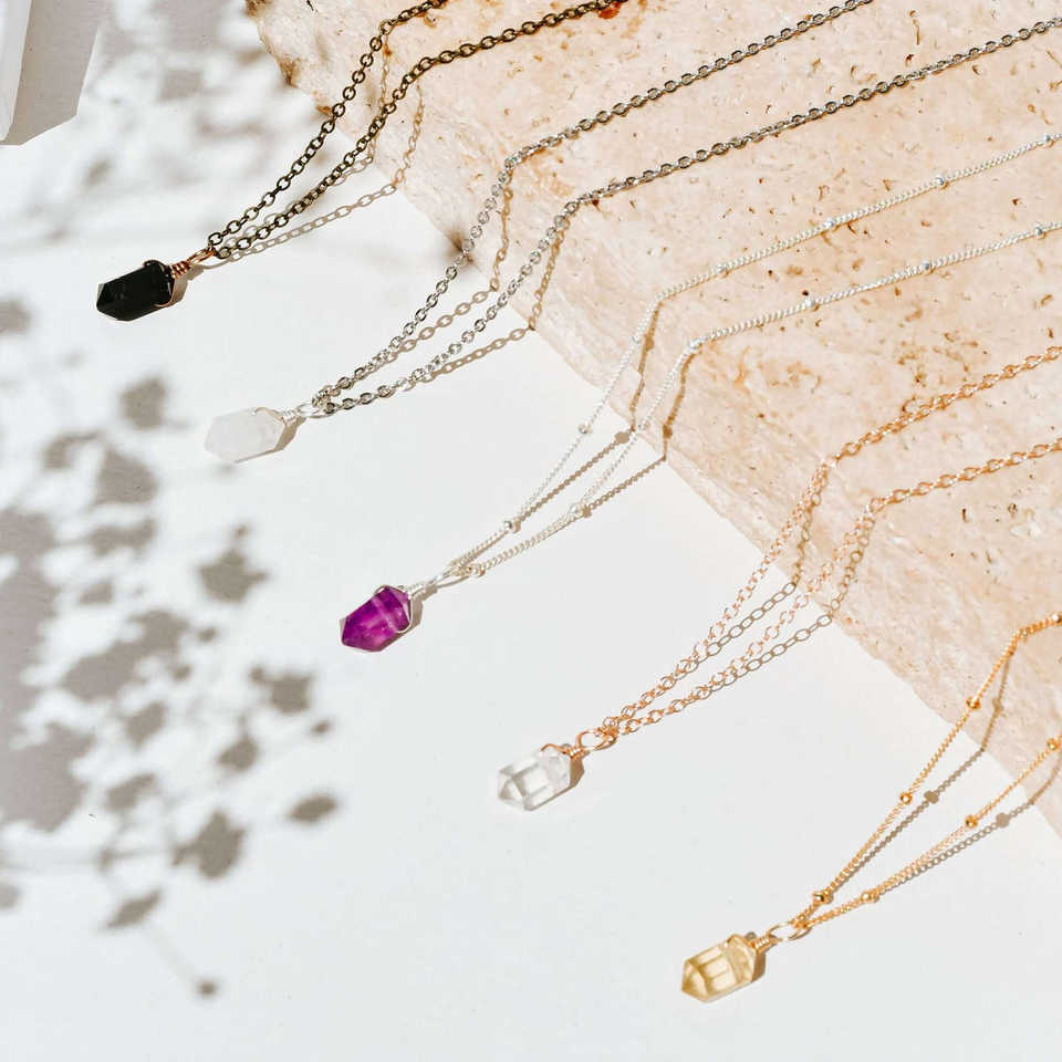 Pendentif en pierre de cristal à double terminaison en argent sterling 925, collier personnalisé pour femmes