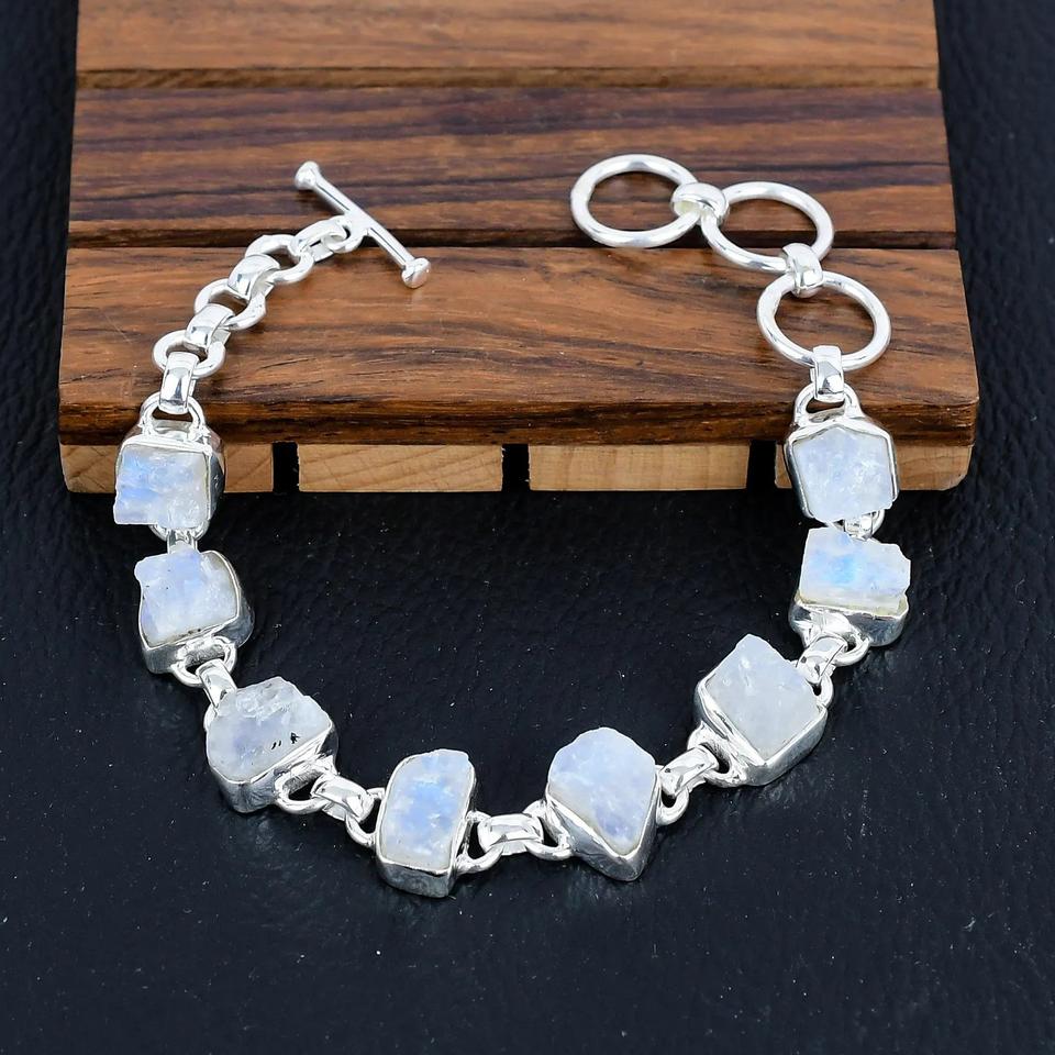 Bracelet d'amitié en argent sterling 925 plaqué or, chaîne fine, fait main, pierre de lune naturelle, pierre précieuse unique, ethnique, classique, pierre de naissance