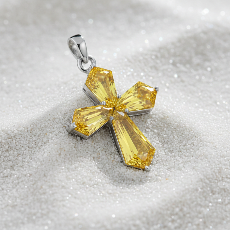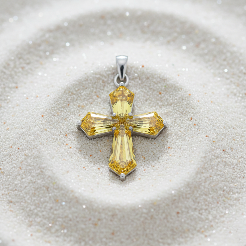 Model Number:Fancy Yellow Cross Diamond Pendant