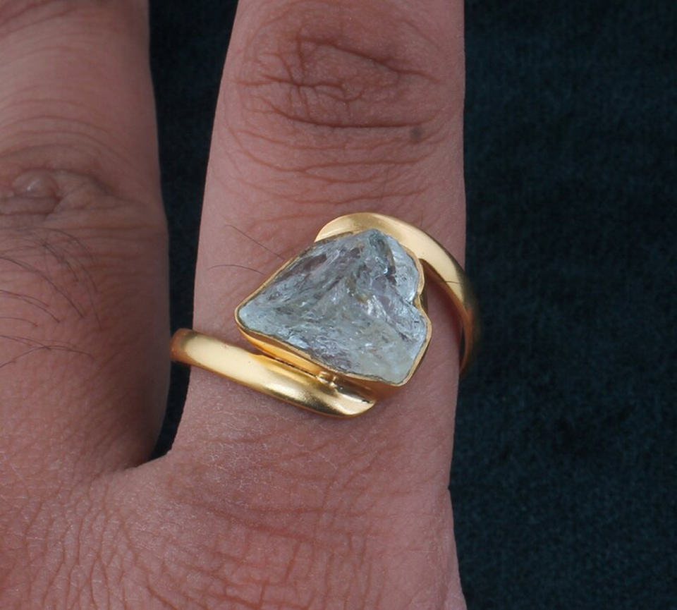 925 Sterling Silver Gold Plated Natural Aquamarine Gem Ring 8X10mm Love Shape Bezel Set For Fashion Jewelry Set Anniversary Gift