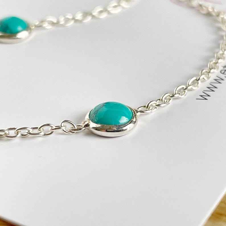 Collier station fantaisie turquoise en argent sterling 925 plaqué rhodium plaqué or Chaîne satellite délicate pour son cadeau d'anniversaire
