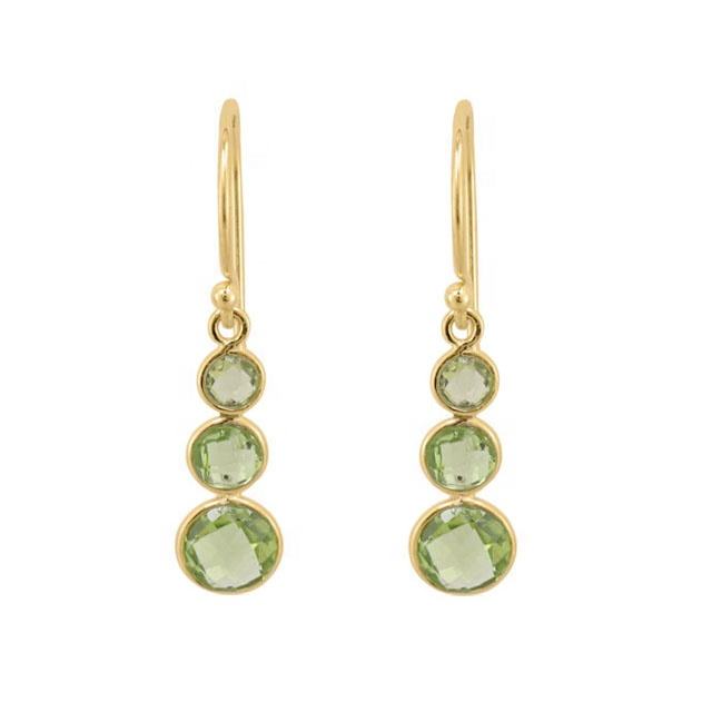 Boucles d'oreilles pendantes en argent sterling 925 avec améthyste verte, finition polie, plaqué or rose, forme ronde, style religieux, cadeau de fête pour femmes