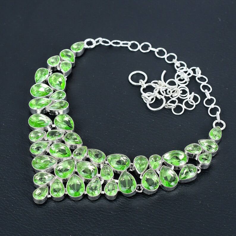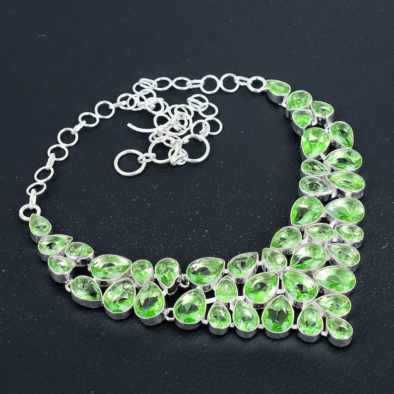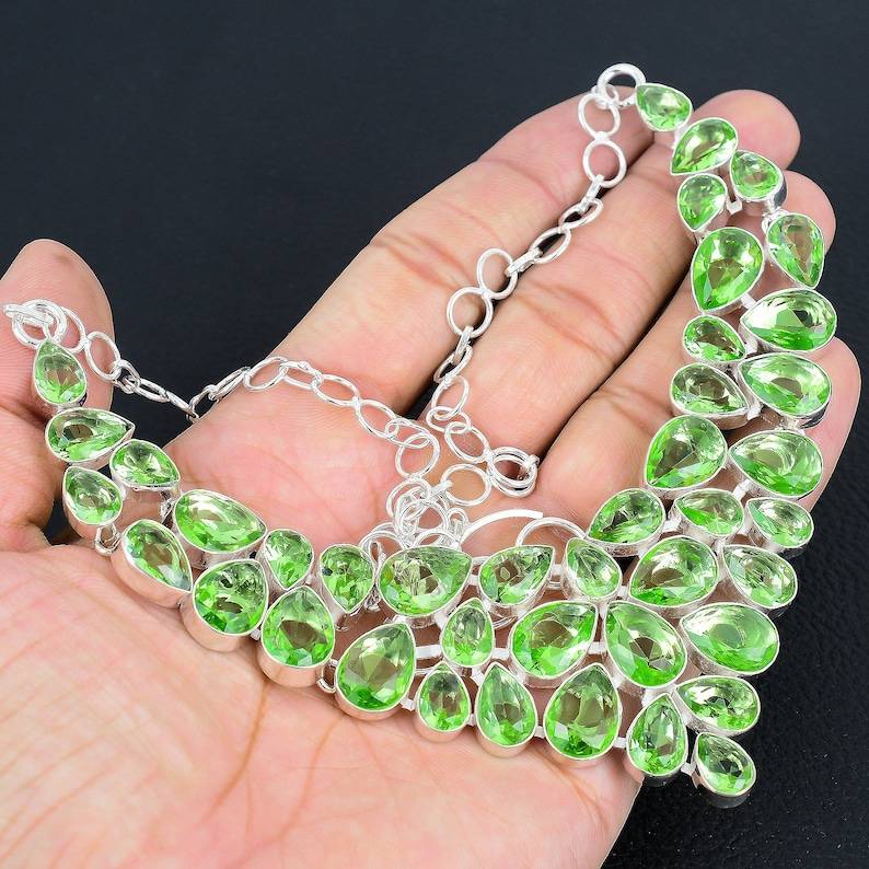 925 Sterling Silver Green Emerald Necklace Handmade Christian Faith Religious Women's Jewelry Link Chain Brass Wedding Gift
