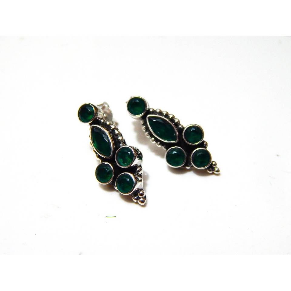 925 Sterling Silver Green Onyx Earrings Handmade Stud Jewelry with Faceted Gemstone Screw Shape Pattern for Anniversary Gift