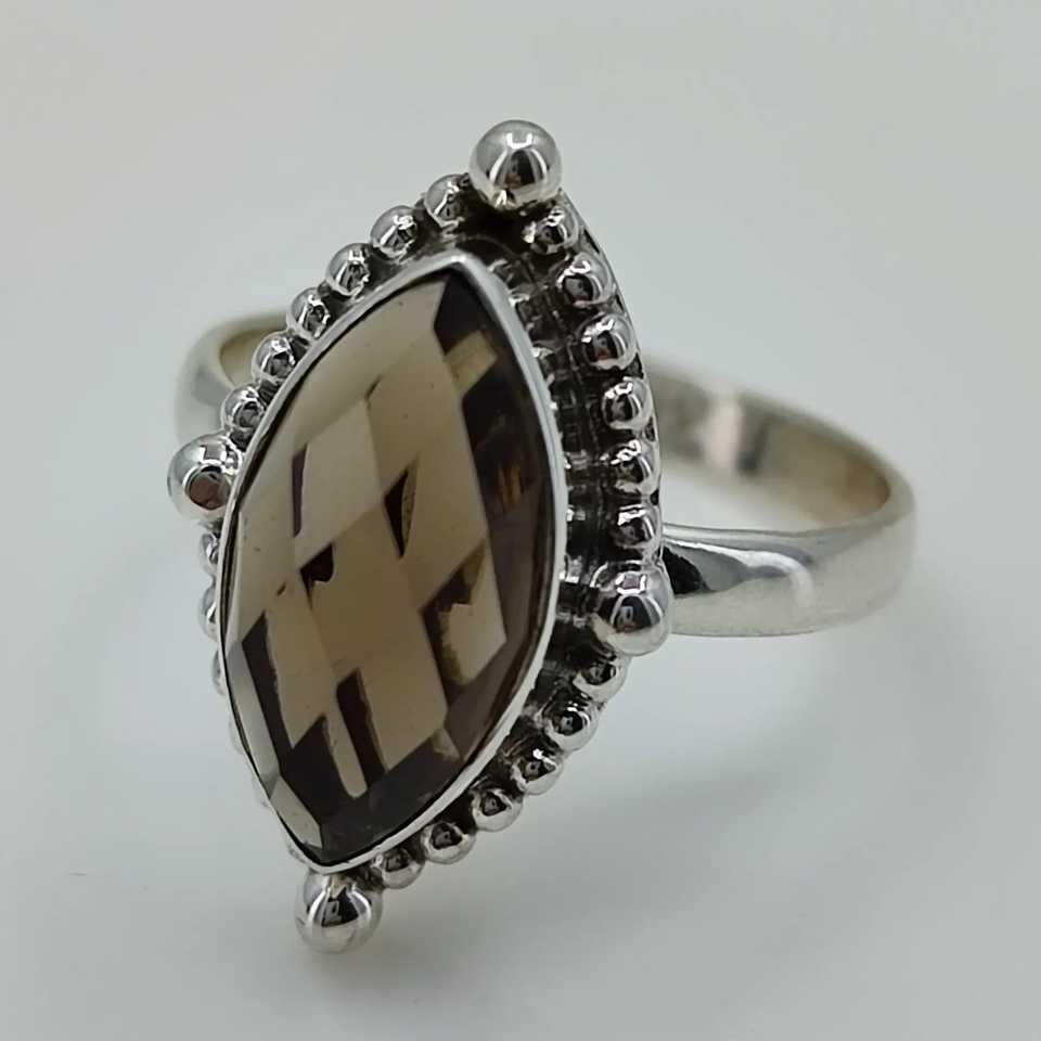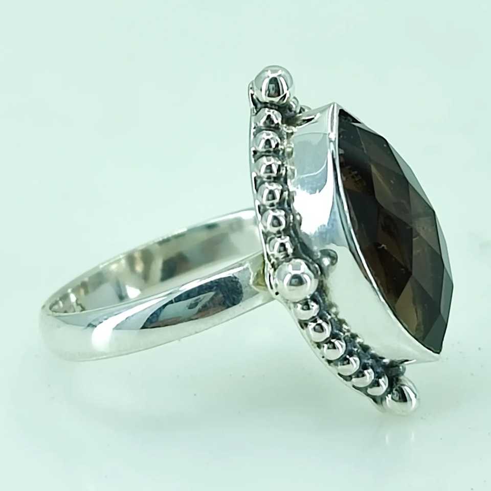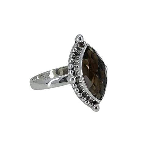 Bague bohème artisanale en argent sterling 925 avec quartz fumé taille marquise – Cadeau idéal pour elle, pierre de naissance de novembre