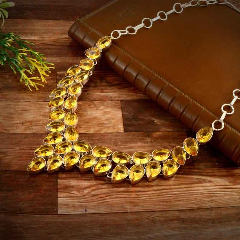 925 Sterling Silver Handmade Religious Jewelry Link Chain Yellow Citrine Necklace for Christian Weddings & Anniversaries