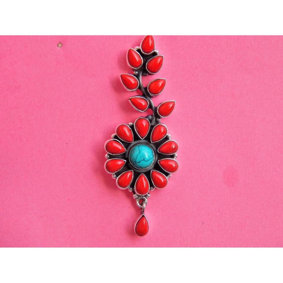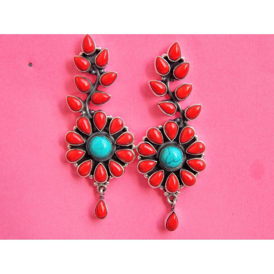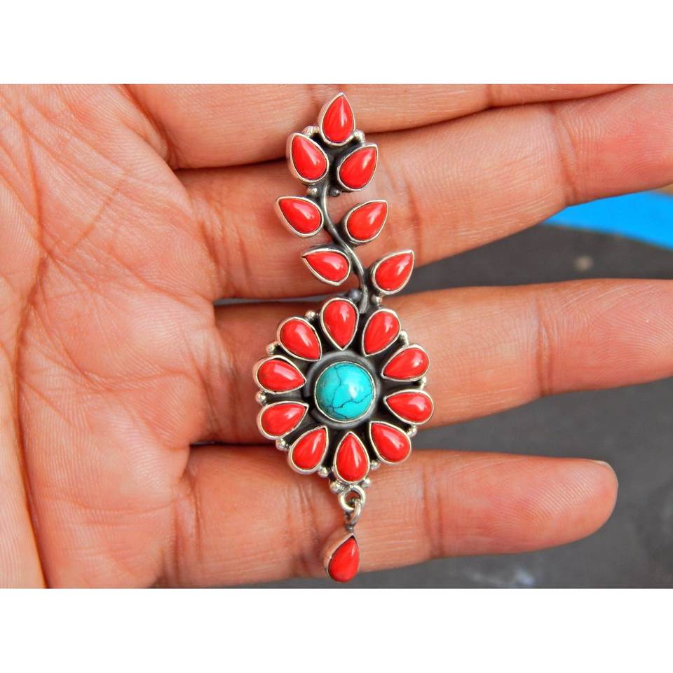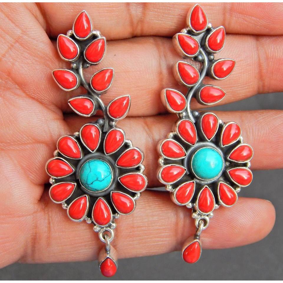 925 argent Sterling fait à la main à la mode boucle d'oreille goujon naturel corail Turquoise bijoux de mode pour filles femmes cadeau article E0236-GS