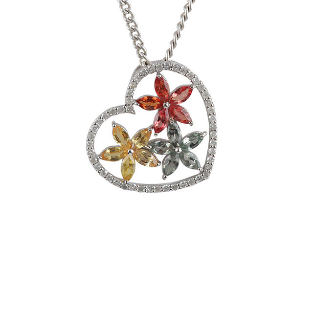 Pendentif en forme de coeur en argent sterling 925 pierres précieuses multicolores pendentifs à breloque romantiques pour les bijoux de cadeau de fête de la Saint-Valentin