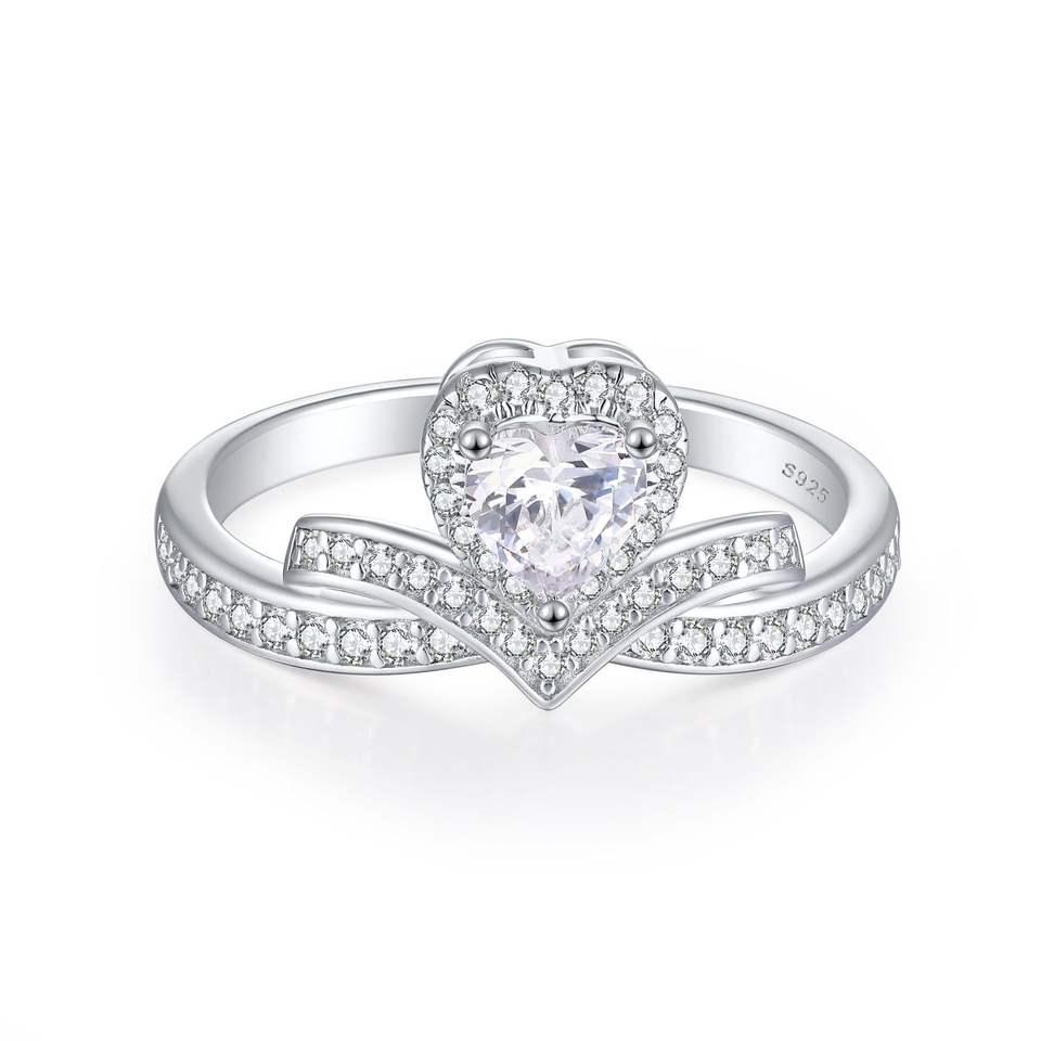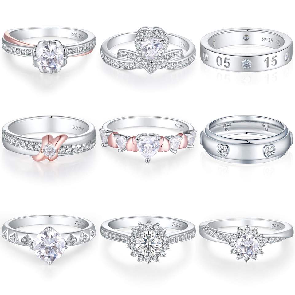 Bague de mariage en forme de coeur en argent sterling 925 plaqué rhodium taille princesse diamant Logo gratuit pour la fête d'anniversaire femmes aimées