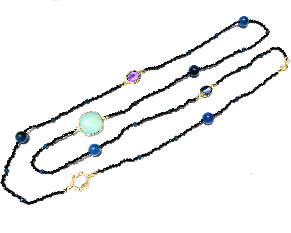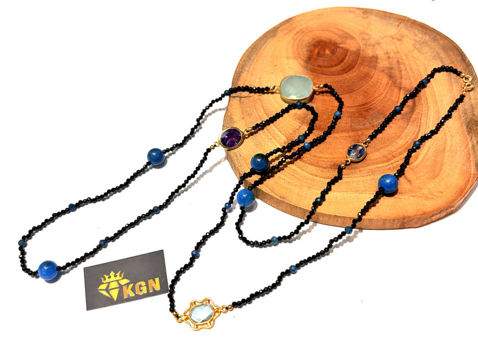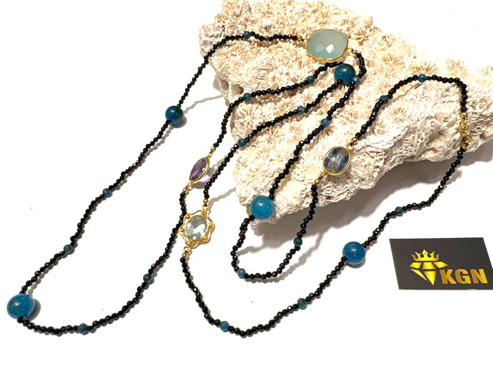 Stone Type:Aqua Chalcedony, Amethyst, Black Spinel, Apatite