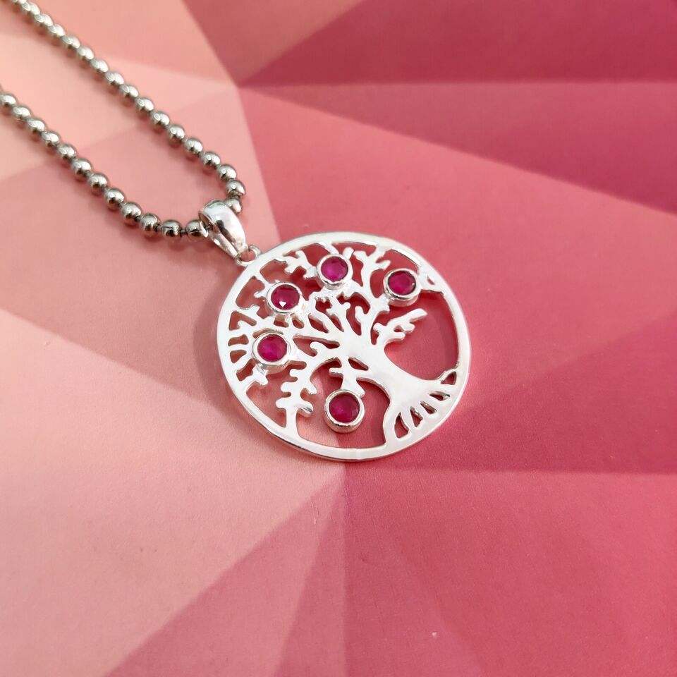 Pendentif arbre de style indien en argent sterling 925 avec pendentifs fins en agate de rubis et breloques pour femme