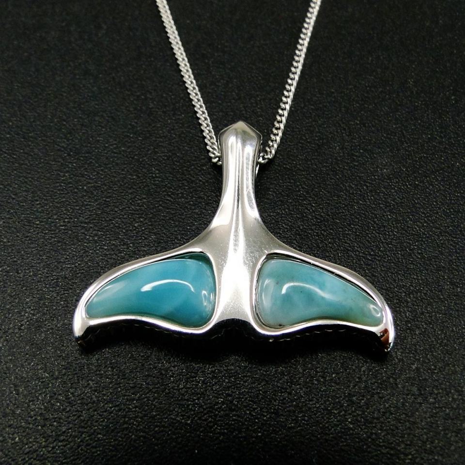 Wood Jewelry:Rhodium Plated Whale Tail Necklace