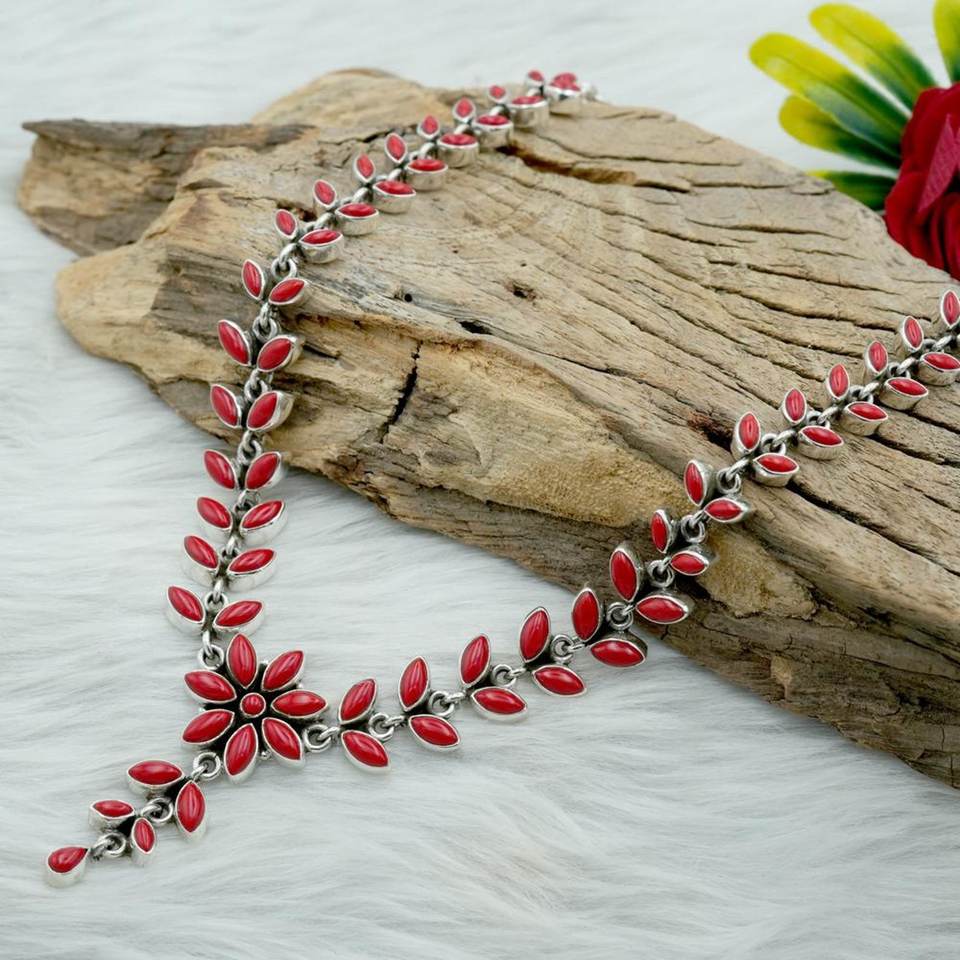Ensemble de bijoux en argent Sterling 925 fait à la main collier de pierres précieuses de corail pour les femmes collier de pierres précieuses fines cadeau pour elle