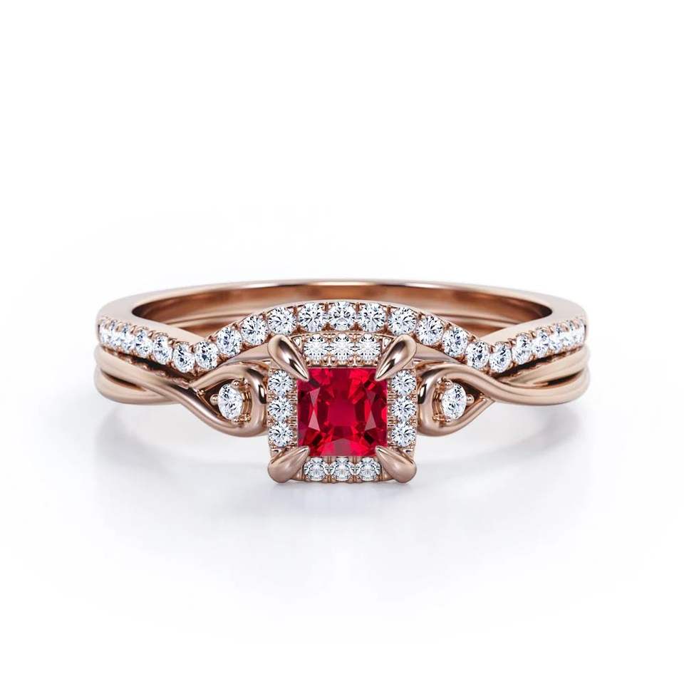 Bague de fiançailles classique en argent sterling 925 avec rubis créé en laboratoire, taille princesse, halo, faite à la main, bague de mariage en pierres précieuses
