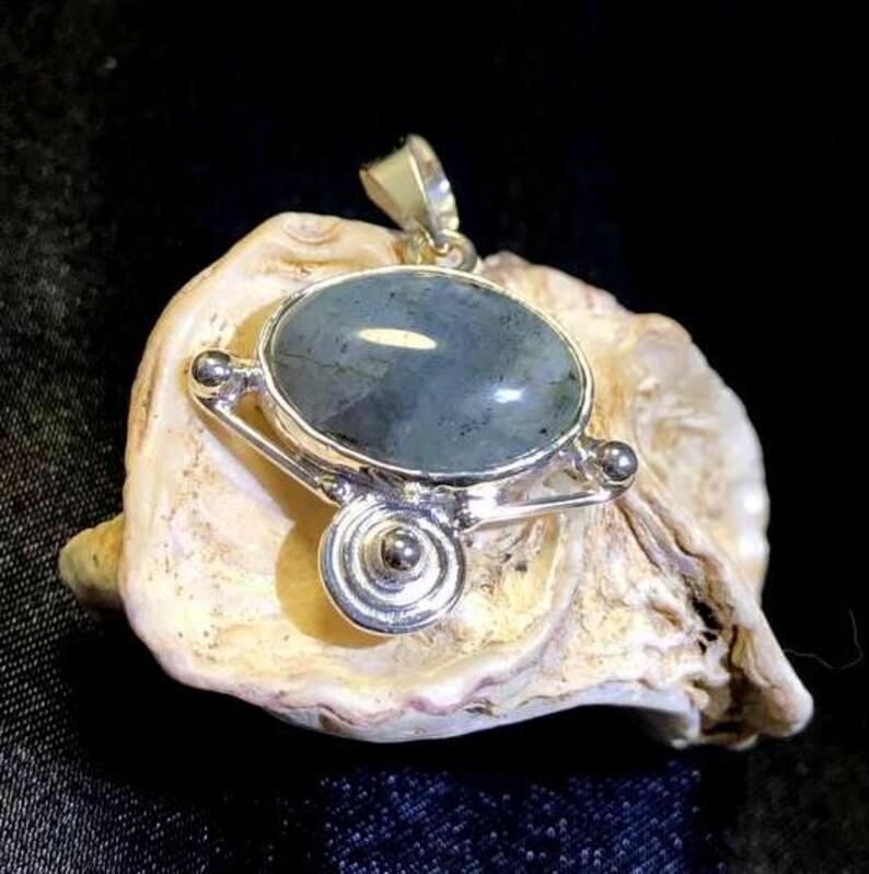 Pendentif Labradorite en argent sterling 925 fait à la main bijoux vintage uniques cadeau pour elle breloque de collier plaqué or