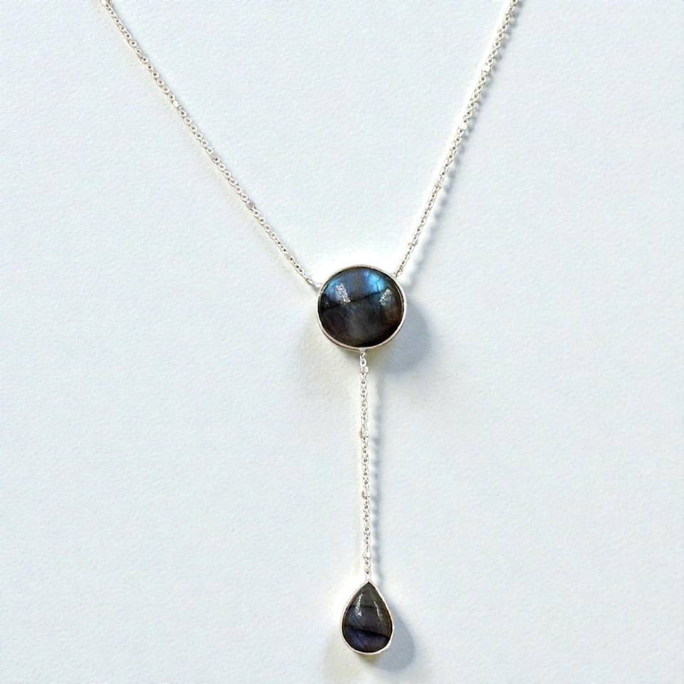 Collier en argent sterling 925 avec pendentif en labradorite en forme de Y, pierres précieuses rondes et en forme de poire, pendentif en moissanite, collier pour femme