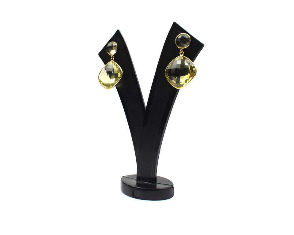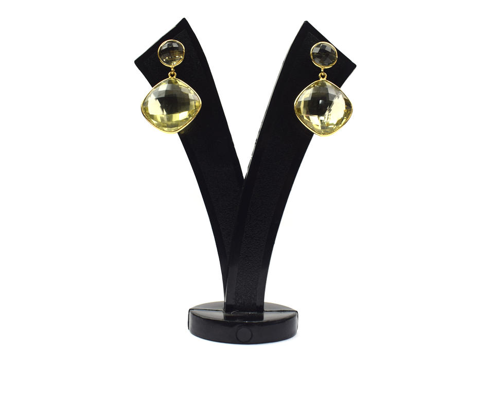 Nom du produit:Boucle d'oreille clou en argent sterling 925, quartz citron et plaqué or