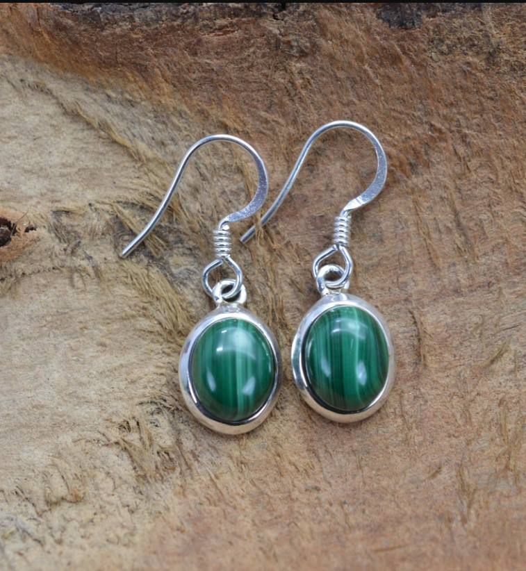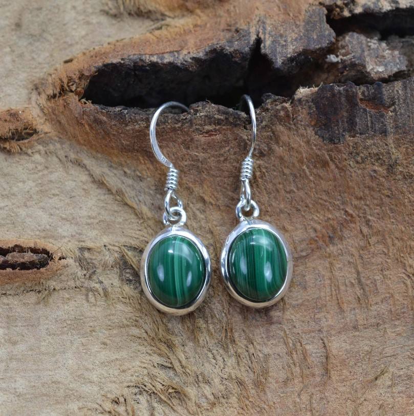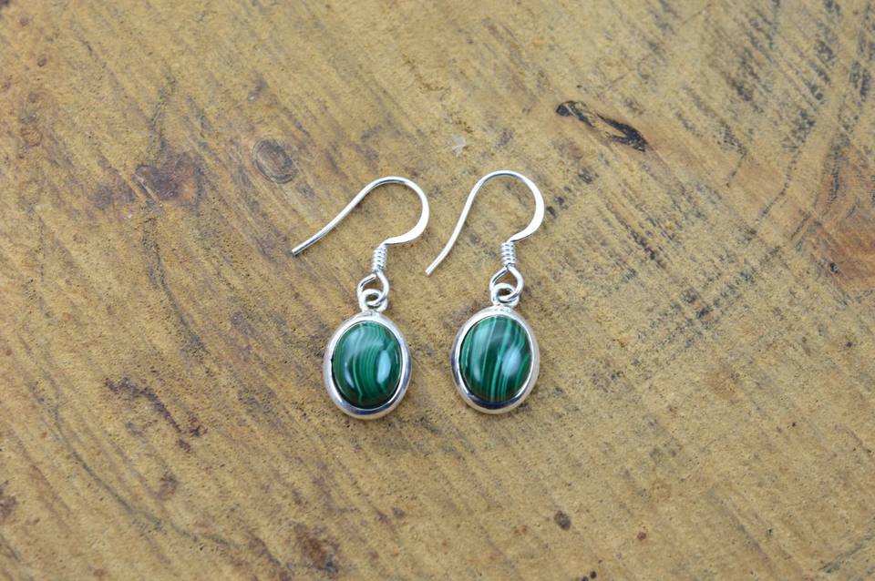 Product Name:Natural Green Malachite Gemstone Silver Earrings