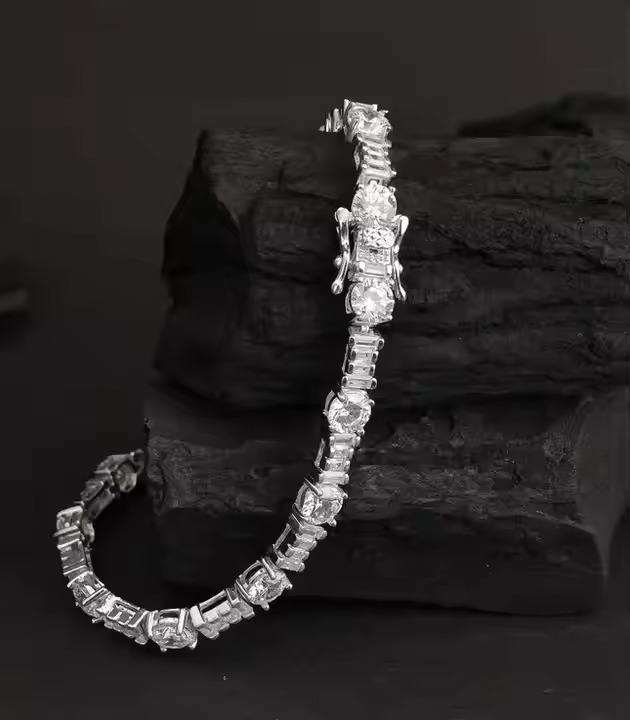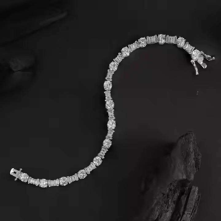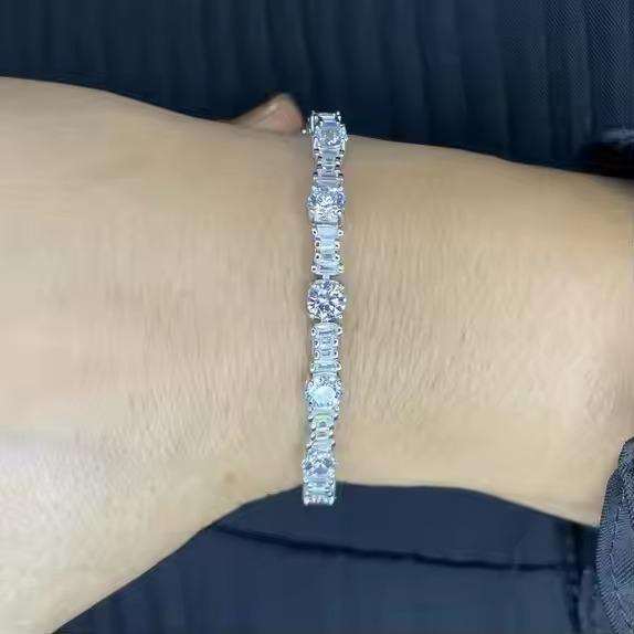 925 Sterling Silver Moissanite VVS Tennis Bracelet Round Cut Diamonds Rhodium Plated Trendy Style for Parties and Weddings