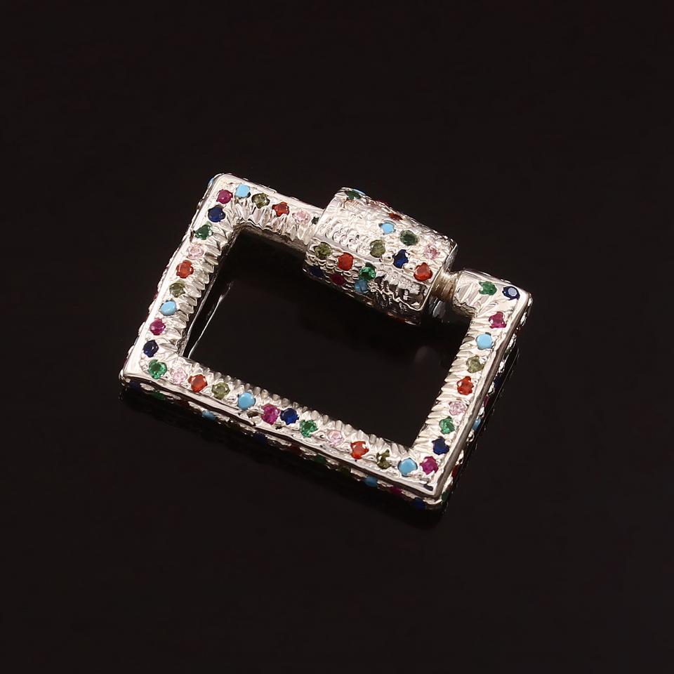 Breloques de verrouillage rectangulaires en argent sterling 925 avec CZ multicolores, sans nickel, sans plomb, plaqué or/argent/rhodium pour