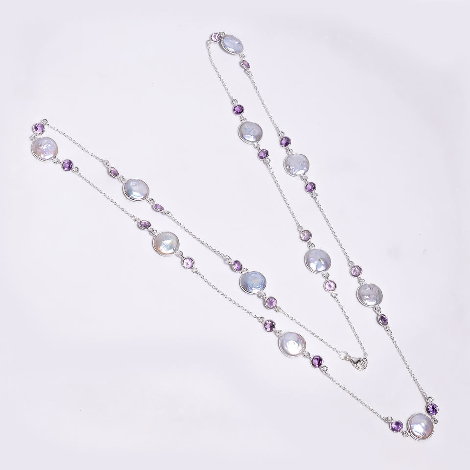 Collier en argent naturel de pierres précieuses brutes