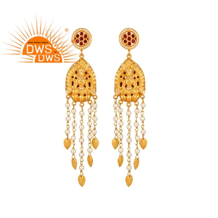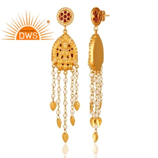 Boucles d'oreilles de lustre en argent sterling 925 avec cz naturel, rubis et perles pour femmes fabricant de bijoux traditionnels