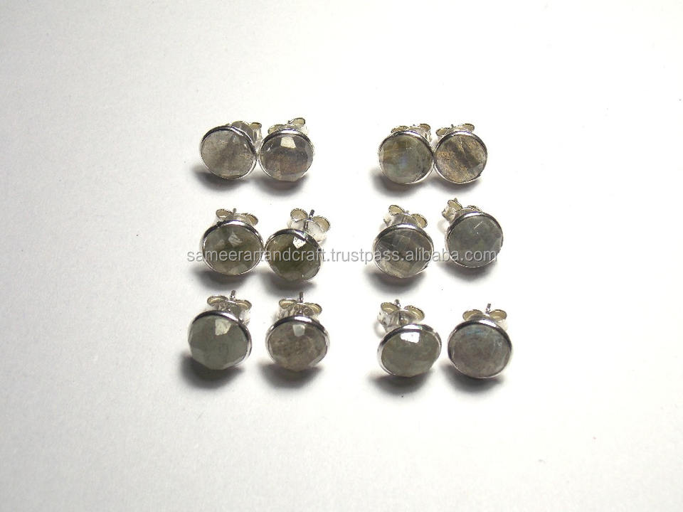 925 argent Sterling naturel Labradorite pierre précieuse avec plaqué or fait à la main forme ronde cadeau de mode pour sa boucle d'oreille