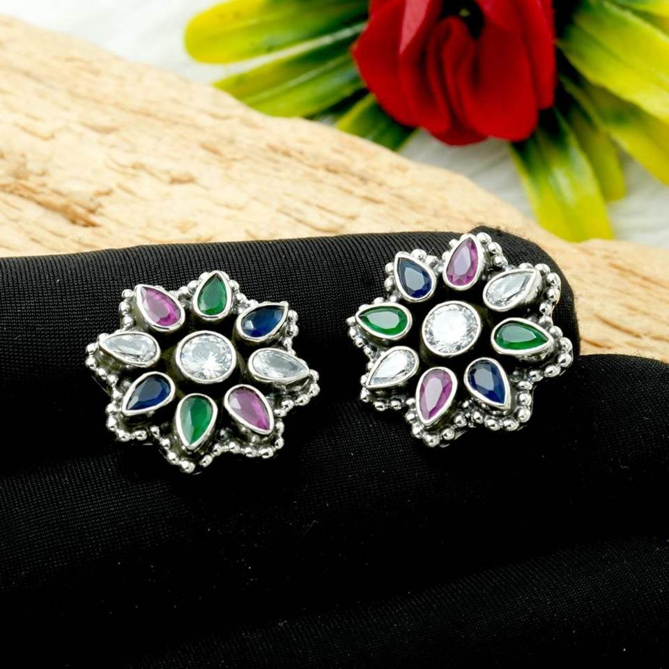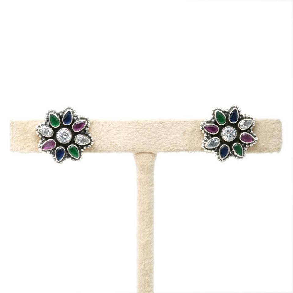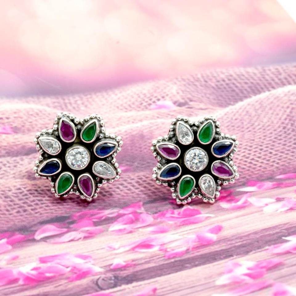 Boucles d'oreilles florales multi-pierres naturelles en argent sterling 925 Bijoux en or rose pour anniversaire son cadeau