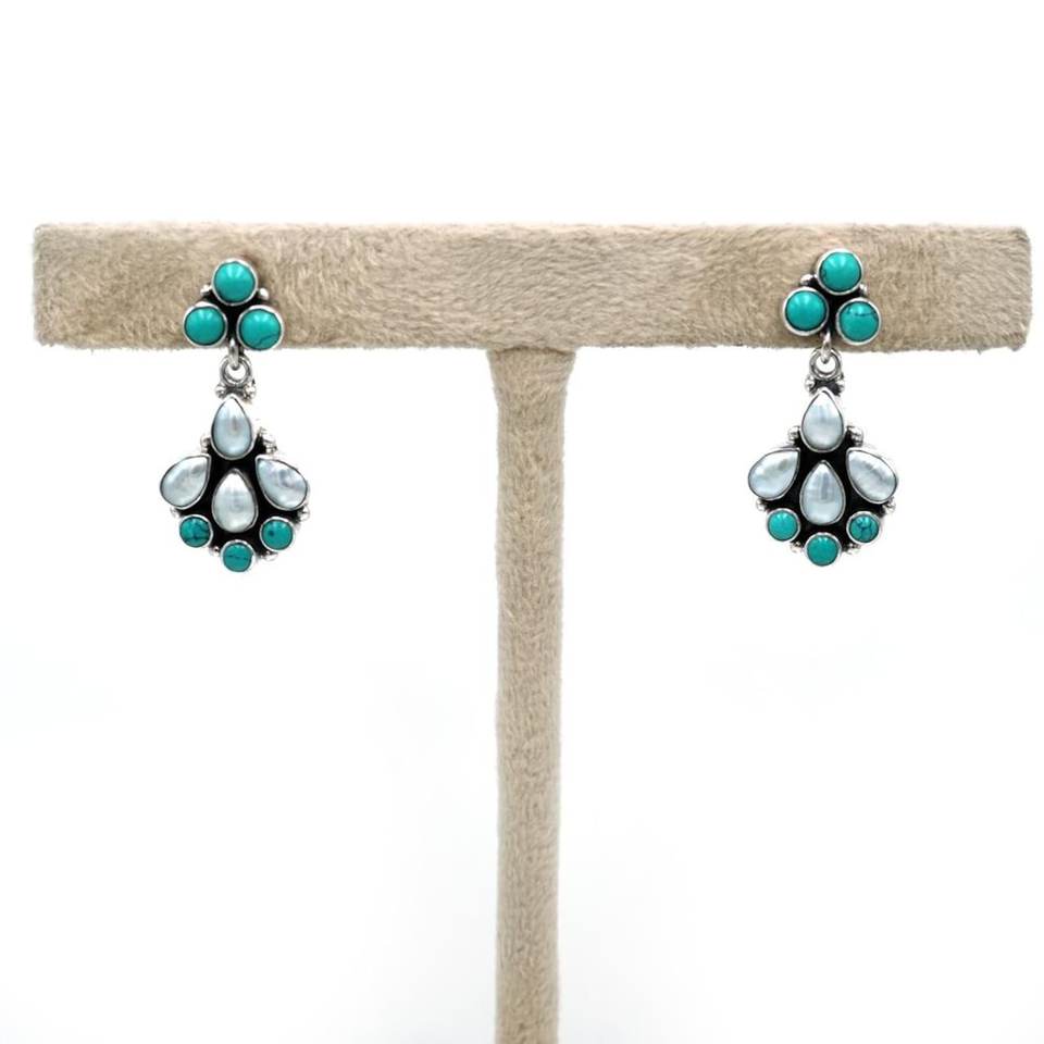 925 argent Sterling naturel multi pierres précieuses fleur florale boucle d'oreille goujon GIA certifié mignon perle naturelle Turquoise bijoux