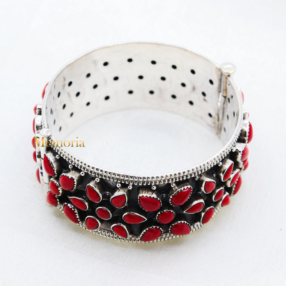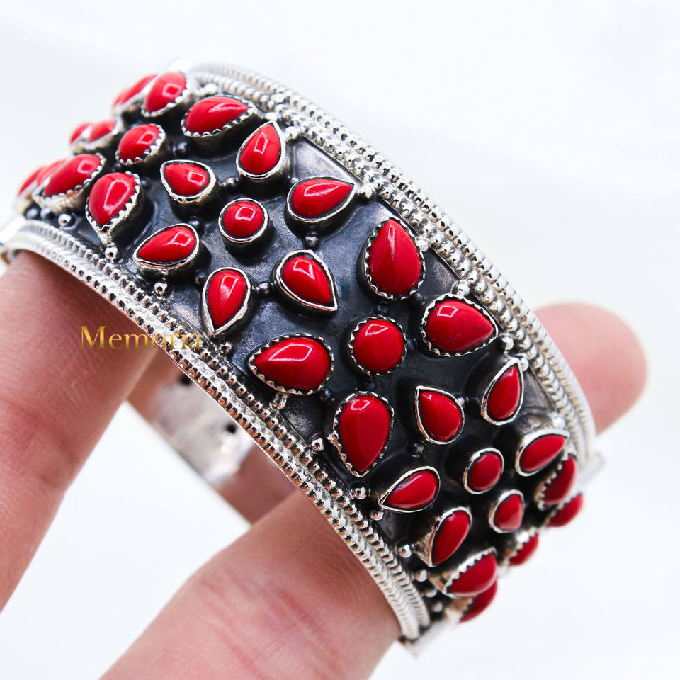 Product Name:Red Coral Gemstone 925 Silver Bracelet