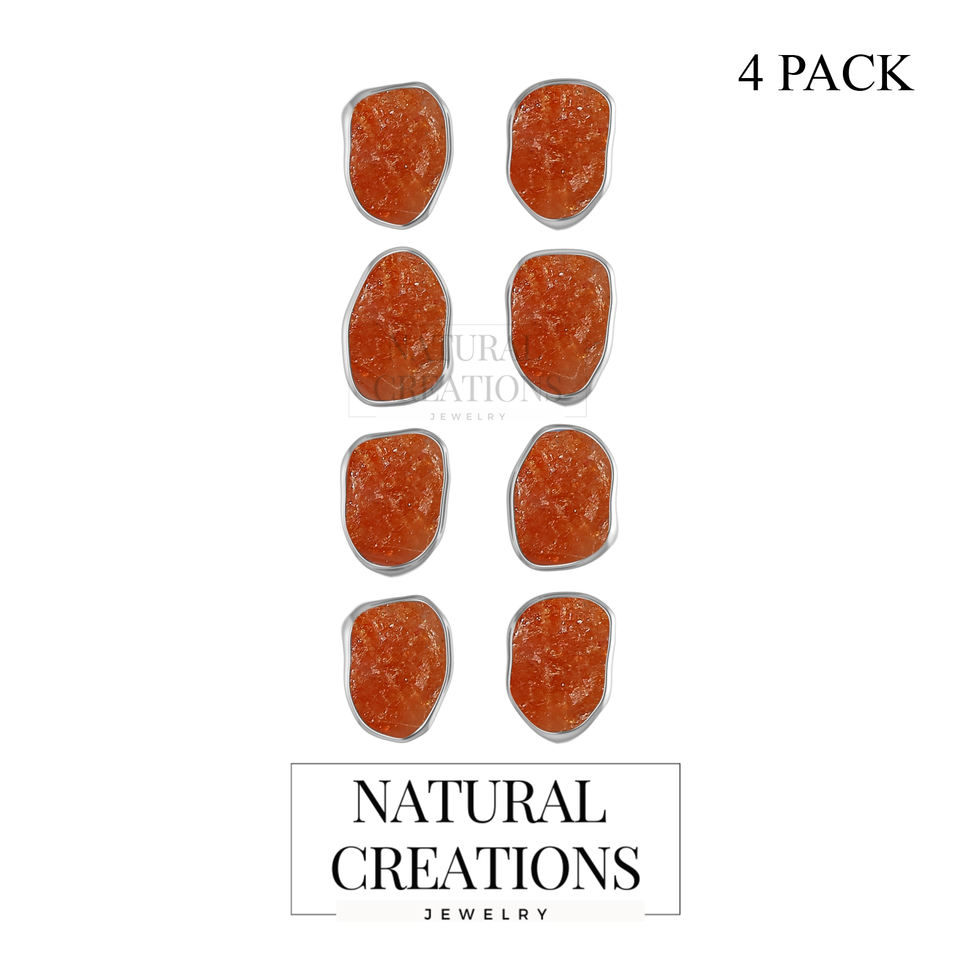 925 Sterling Silver Natural Sunstone Rough Butterfly Lock Stud Boucles d'oreilles Style classique Lunette Setting Pack de 4 paires