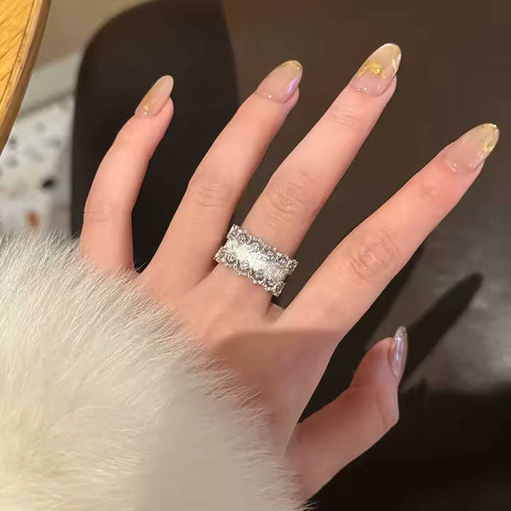 Bague ouverte en argent sterling 925 pour femme, large, à facettes, style rétro, personnalisable, polyvalente, nouvelle tendance