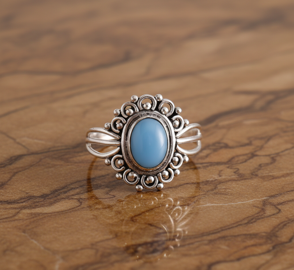 925 argent Sterling oxydé lunette réglage éternité bague bleu calcédoine classique Style Boho femmes mariage anniversaire anniversaire