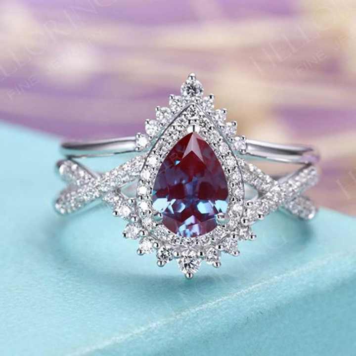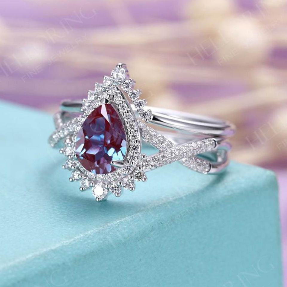 Ensemble de bagues de fiançailles en Alexandrite:Ensemble de bagues de fiançailles en Alexandrite