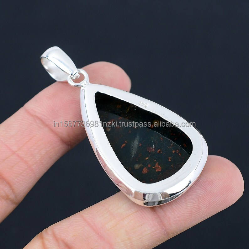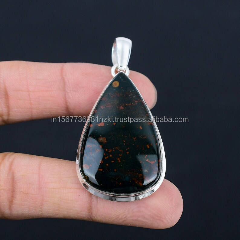 925 Sterling Silver Pendant Bloodstone Gemstone Pendant Handmade Silver Stone Jewellery Bloodstone Pendant for Necklace