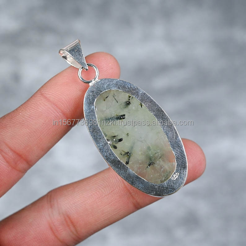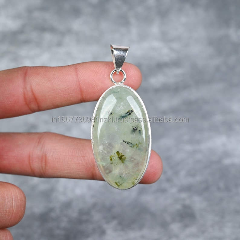 925 Sterling Silver Pendant Prehnite Gemstone Pendant Necklace Handmade Jewelry Prehnite Jewelry Christmas Gift for Her