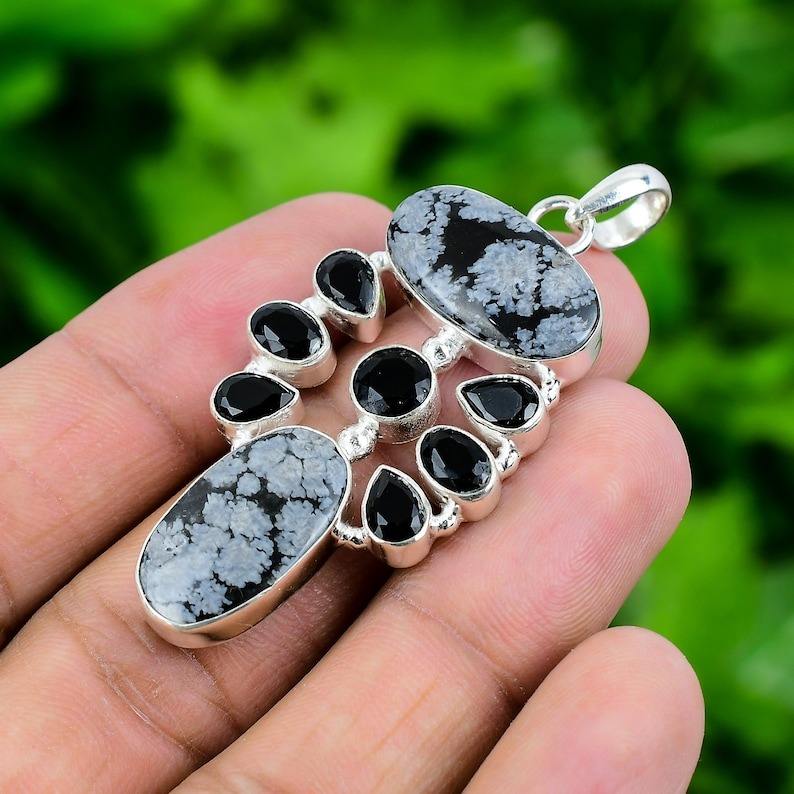 925 argent Sterling parfait cadeau de mariage 925 timbre fait à la main pierres précieuses flocon de neige obsidienne Spinner pendentif meilleure qualité bijoux