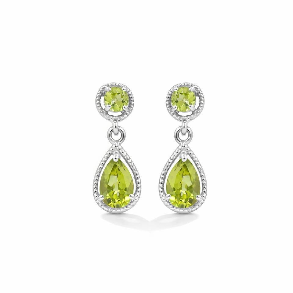 Boucles d'oreilles pendantes en argent sterling 925 avec péridot, pierres précieuses rondes et en forme de poire, bordure en corde plaquée or, design de créateur