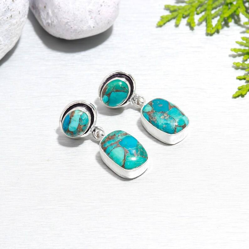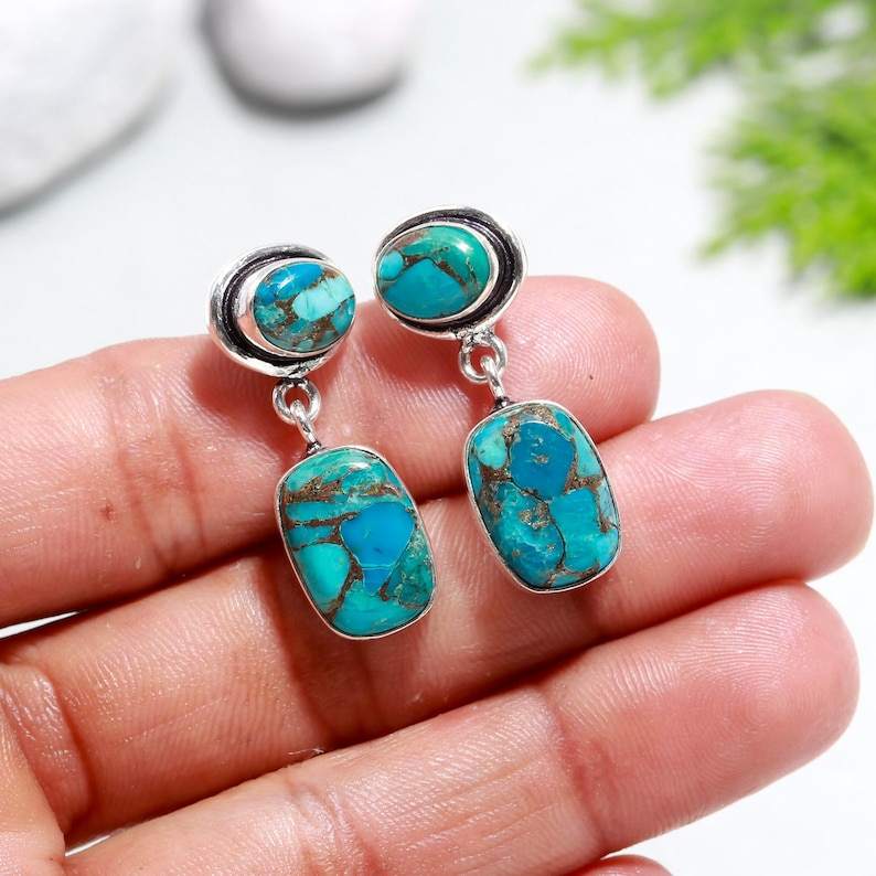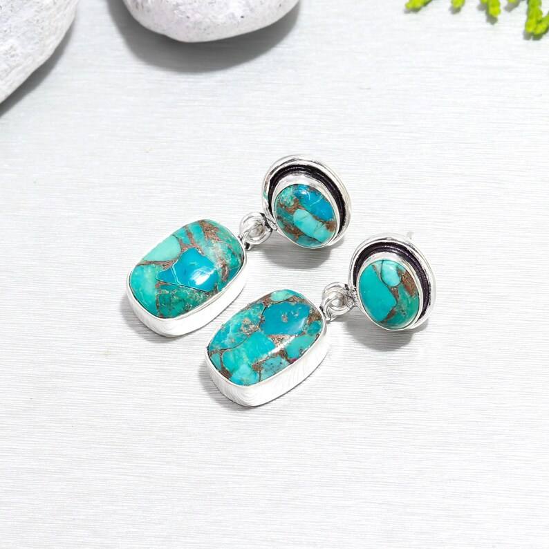 Product Name:Natural Blue Copper Turquoise Gemstone Silver Earrings
