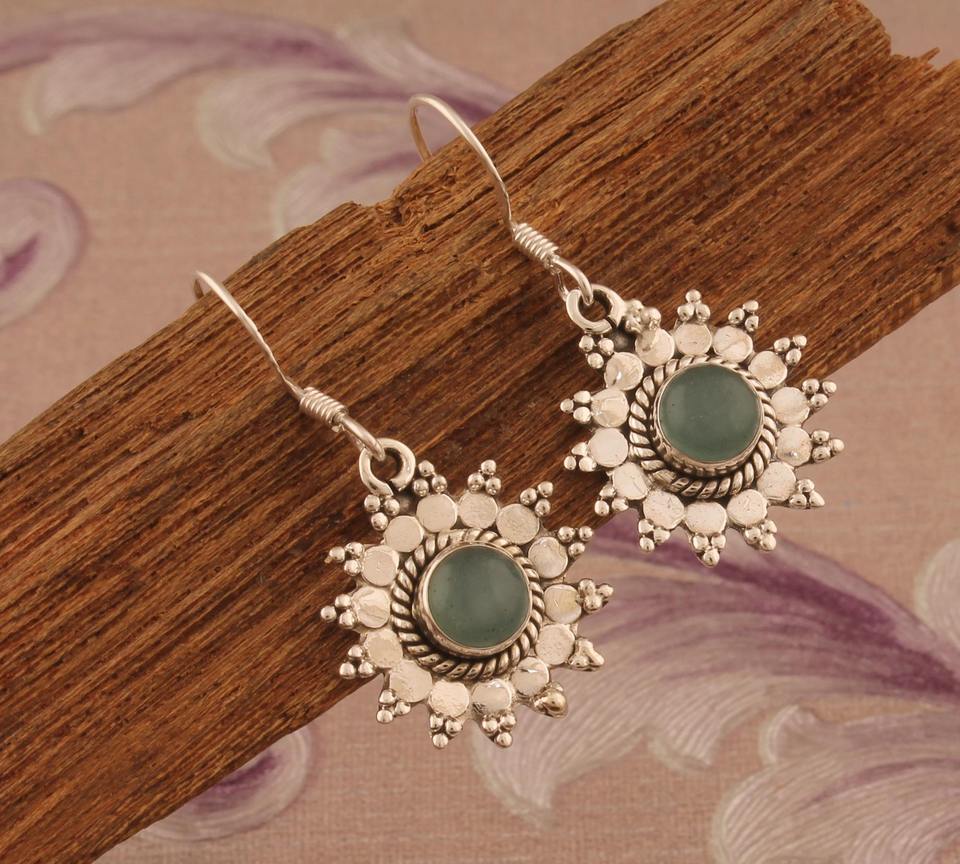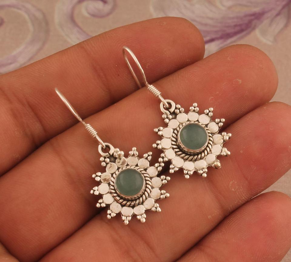Product Name:Natural Aqua Chalcedony Gemstone Silver Earrings