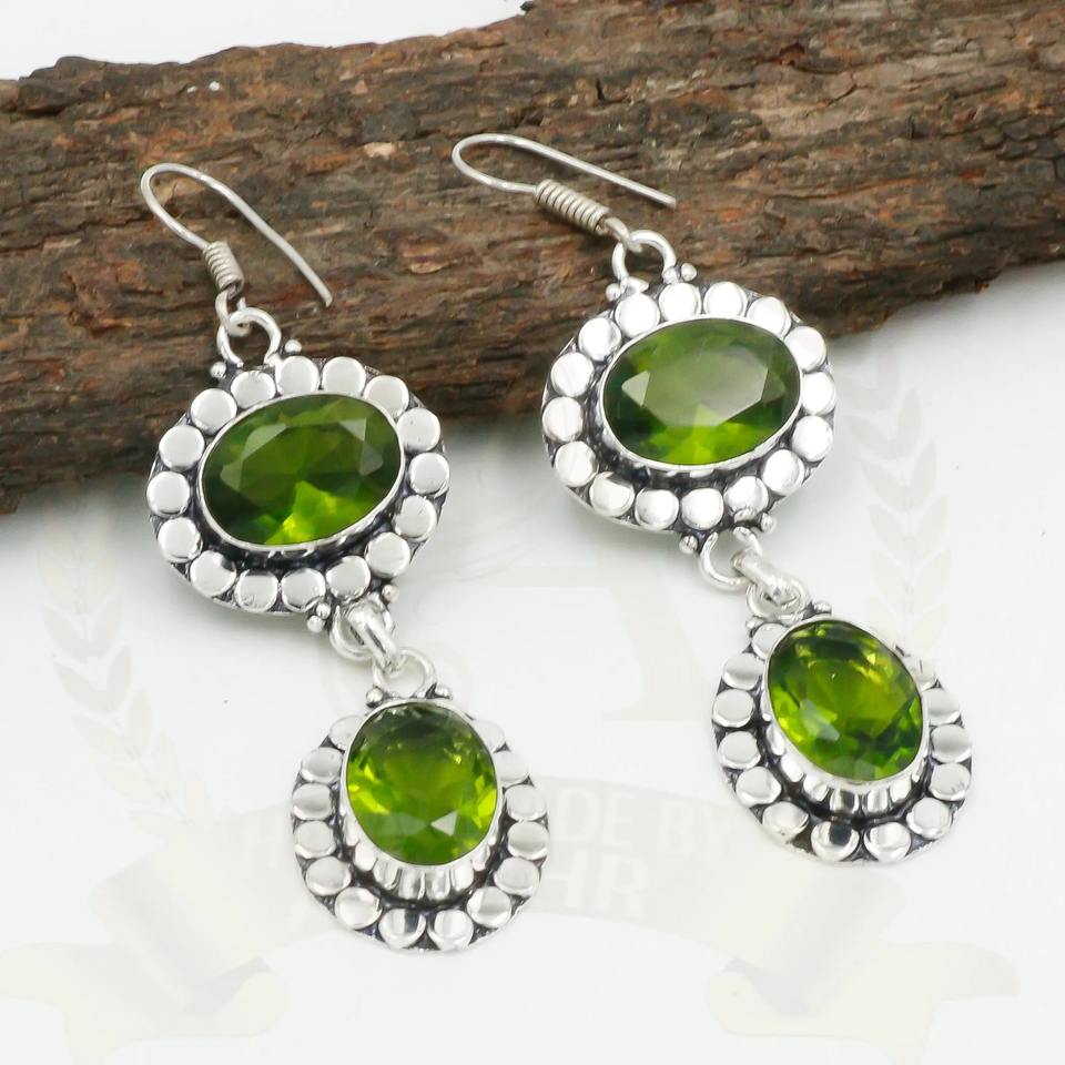 Product Name:Natural Peridot Quartz Gemstone Silver Earrings