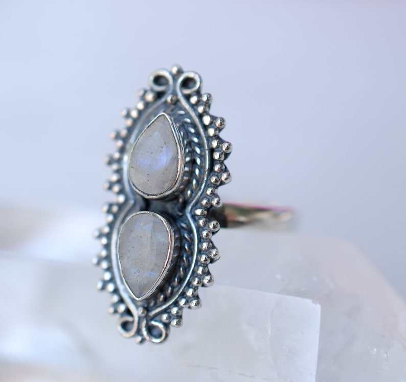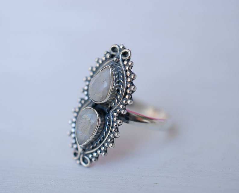 925 Sterling Silver Rainbow Moonstone Ring Natural Gemstone Jewelry with June Birthstone Statement Gift for Her for Weddings