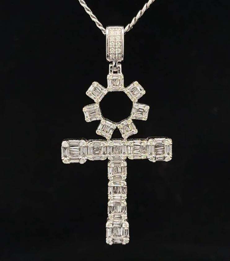 925 Sterling Silver Rhodium Finition 14K Or Blanc Moissanite Diamant Ankh Pendentif Hommes Femmes Mode Bijoux Alliage pour