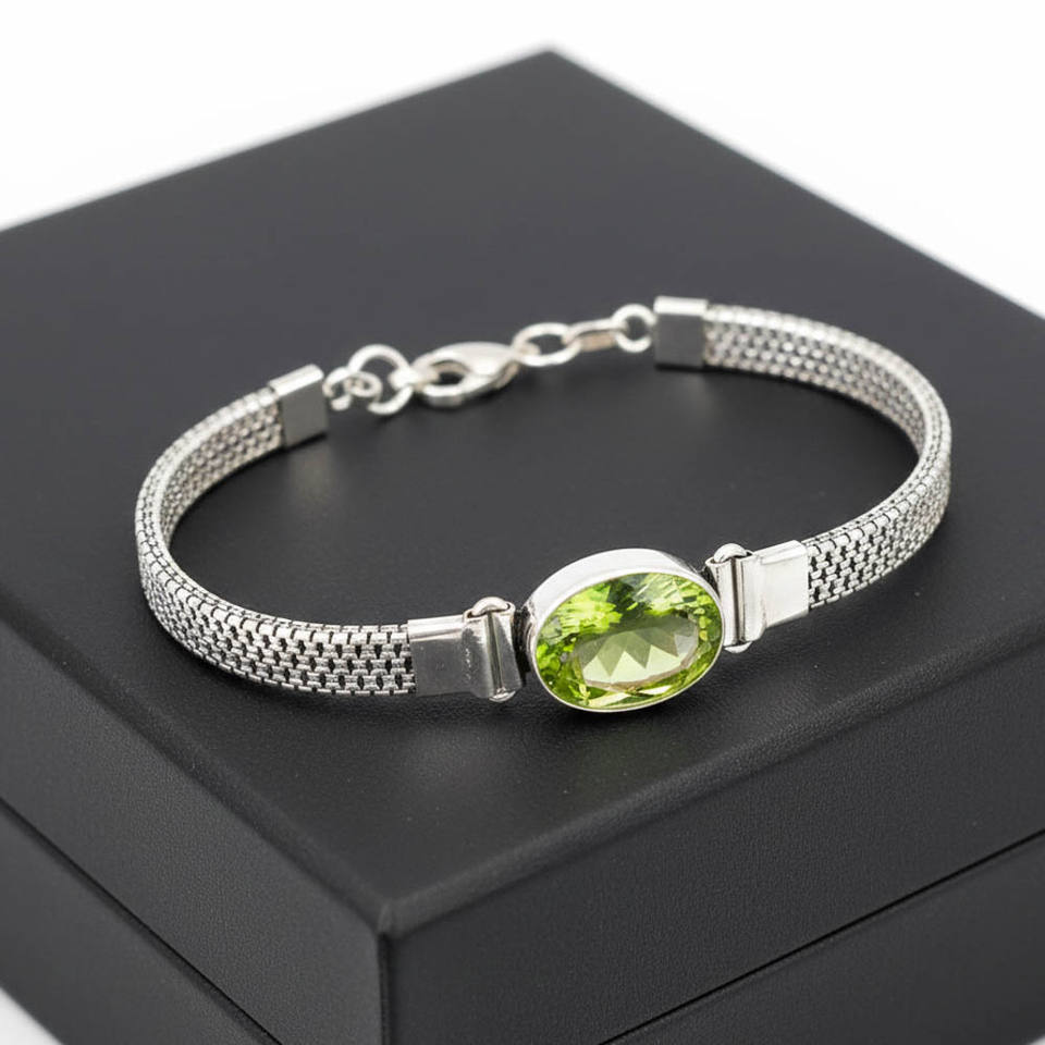Bracelet en argent sterling 925 plaqué rhodium, fait main, style bohème, chaîne à maillons, pour femme, péridot vert, coupe ovale, réglable